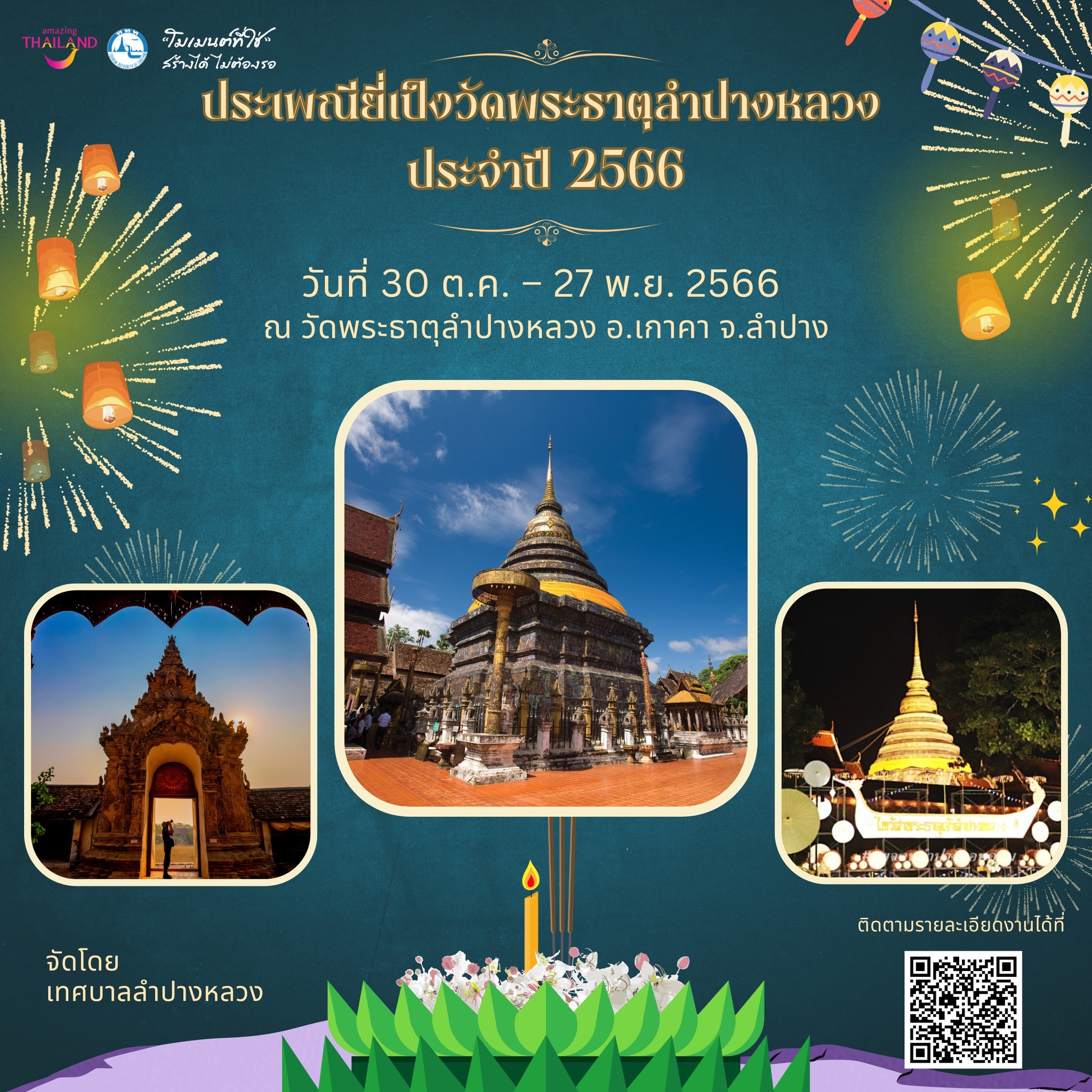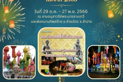 วันที่ 30 ต.ค. – 27 พ.ย. 2566 ณ วัดพระธาตุลำปางหลวง อ.เกาะคา จ.ลำปาง จัดโดย เทศบาลตำบลลำปางหลวง สำนักงานเทศบาลตำบลลำปางหลวง