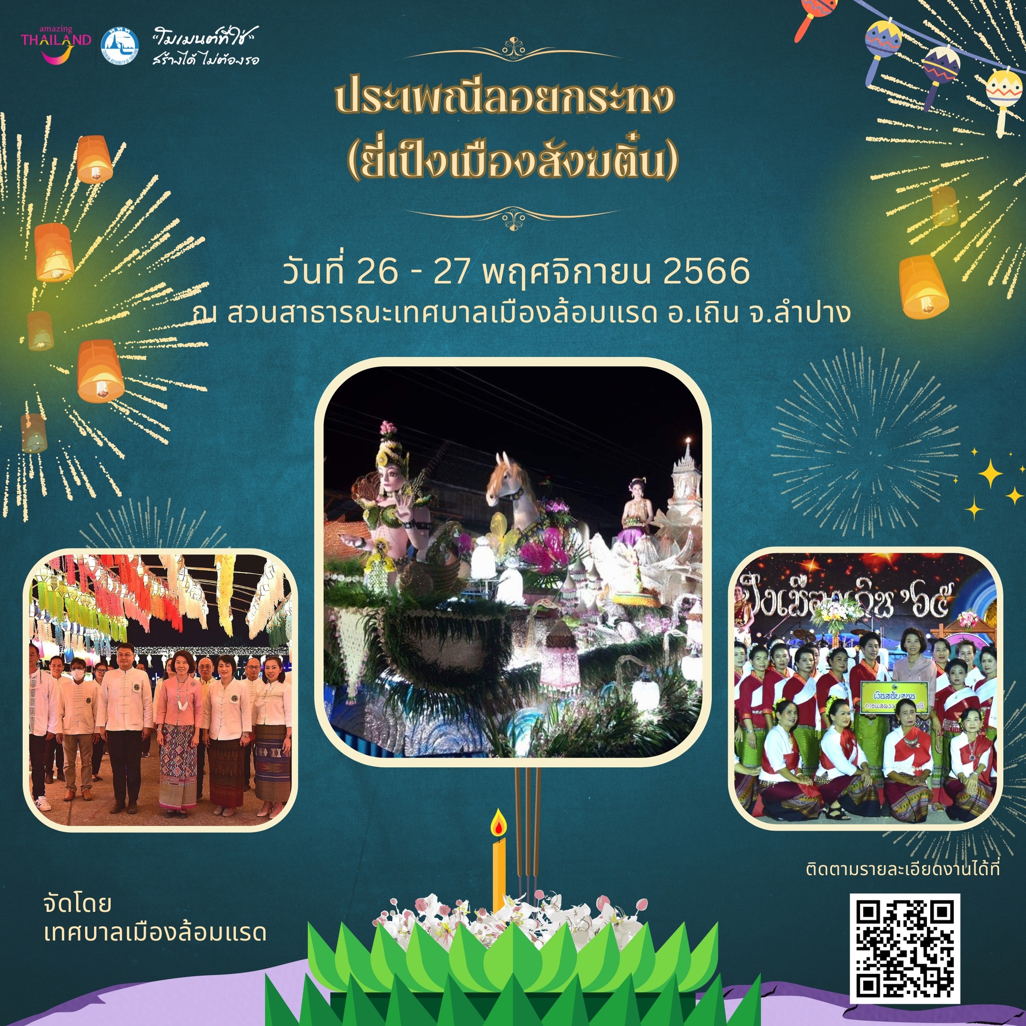 วันที่ 26 – 27 พฤศจิกายน 2566 ณ สวนสาธารณะเทศบาลเมืองล้อมแรด อ.เถิน จ.ลำปาง จัดโดย เทศบาลเมืองล้อมแรด สำนักงานเทศบาลเมืองล้อมแรด จ.ลำปาง