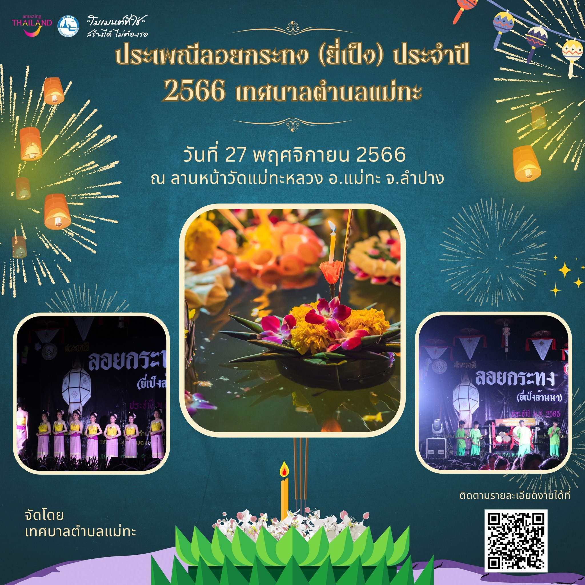 วันที่ 27 พฤศจิกายน 2566 ณ ลานหน้าวัดแม่ทะหลวง อ.แม่ทะ จ.ลำปาง จัดโดย เทศบาลตำบลแม่ทะ เทศบาลตำบลแม่ทะ
